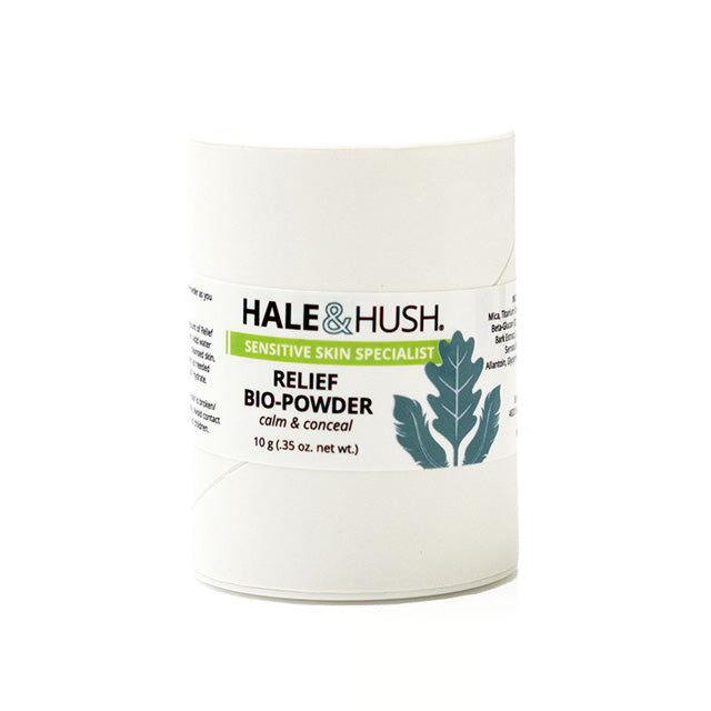 Calm and conceal. Two powerful benefits from one amazing product. Relief Bio-Powder is an expert blend of eight botanical extracts that make this powder a powerful dermatologist-tested, sensitive skin aid. It works in multiple ways…. dry, as a paste (just add water), or mixed with other Hale & Hush products. No matter how it’s put to work, it will accomplish the task. Relief Bio-Powder has fast-acting abilities to quickly rescue skin that is under attack from redness, irritation, and itchiness. Bothered and irritated skin can be, well, bothersome and irritating. Put up a fight against inflammation, redness, and itchiness with a powder that’s up for the challenge. Use it as a powder to immediately conceal and calm redness. Mix with multiple Hale & Hush products for wildly wonderful and fast acting results.